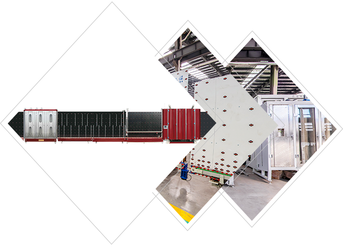玻璃合片時平壓機前后箱機械手杠桿式托料,(機械式硬限位+活動板吸盤吸附)確保自動合片時玻璃不易錯位。清洗箱 風(fēng)干箱 風(fēng)刀等全不銹鋼制作,外形美觀大方,不易銹蝕。